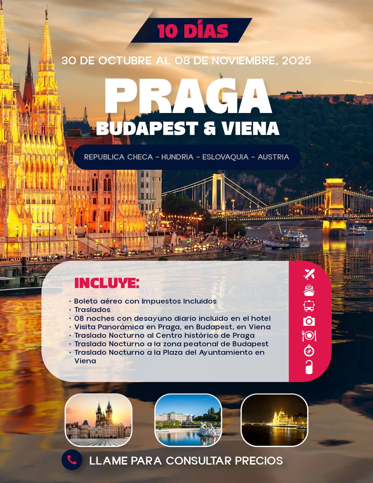 Praga, la encantadora capital de la República Checa, es una ciudad de cuento de hadas. Con sus calles adoquinadas, castillos medievales e impresionante arquitectura gótica y barroca, Praga ofrece un encanto atemporal. Pasee por el famoso Puente de Carlos, explore el majestuoso Castillo de Praga y admire el reloj astronómico en la histórica Plaza de la Ciudad Vieja. Desde acogedores cafés hasta una vibrante vida nocturna, esta ciudad fusiona historia y cultura en cada rincón.